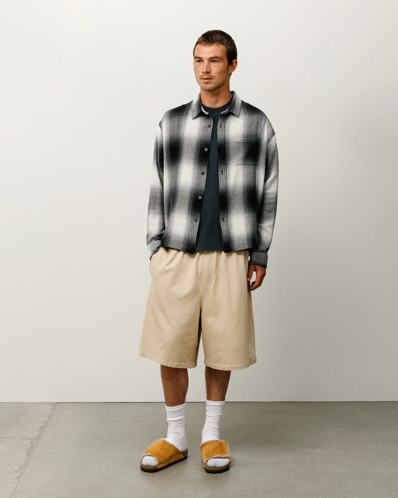 Relaxed fit garment washed short in 350gsm cotton jersey. Stüssy basic logo embroidery at left leg.