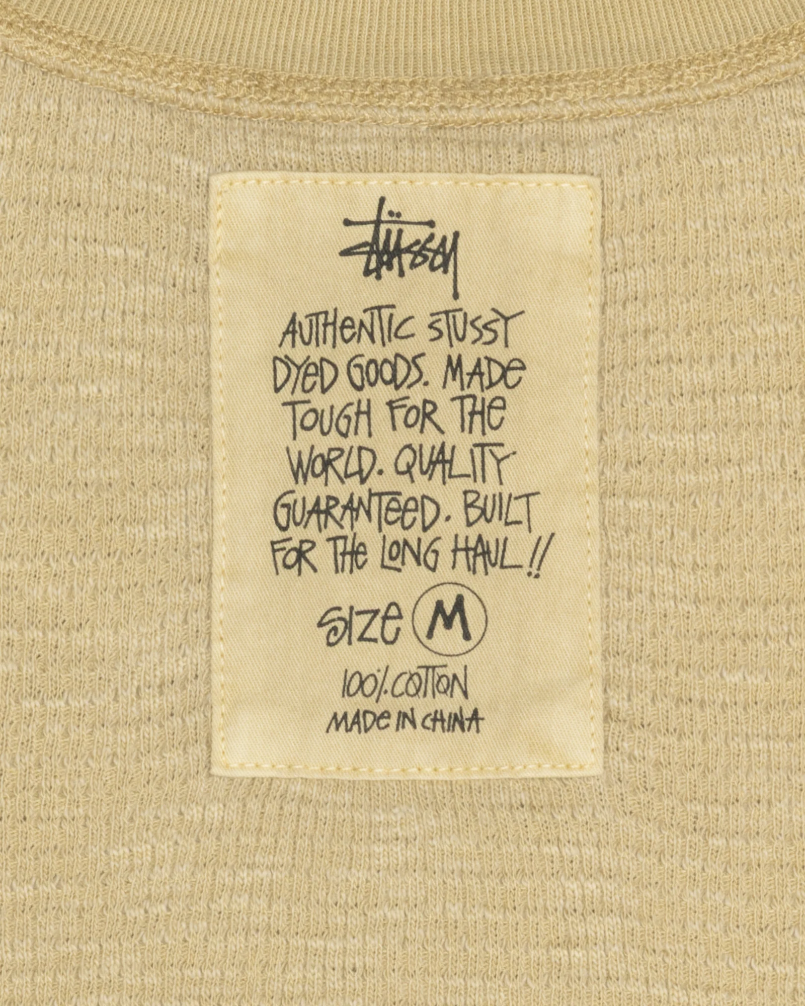 Relaxed fit waffle knit tee in lightweight, pigment dyed stonewashed cotton. Stüssy printed cotton patch label sewn at back neck.